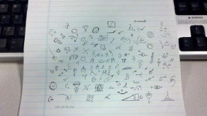 An attempt at communicating with the mother ship? Or notes on the next novel?