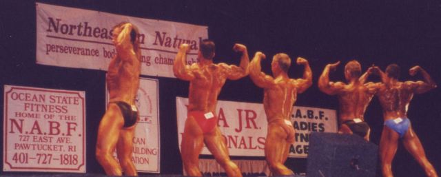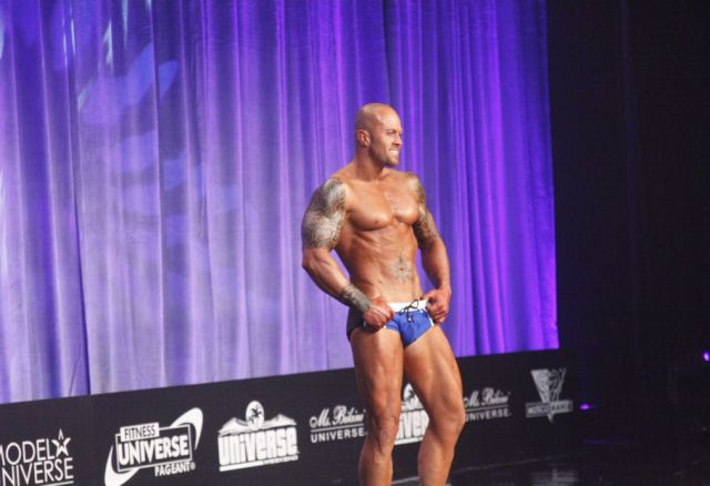Musclemania Model Universe Competitor John Quinlan on Stageby Photographer Luis Rafael