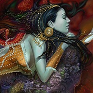 To answer your other questions about this image, it was painted in Photoshop so it’s all digital. The original file is at a much higher resolution than the copies on the web so in that way, I always have a “tangible original” to print from that is higher quality. The painting I’ve done is usually just for me. I create abstract thumbnail sketches with colors and shapes in Photoshop by just scribbling. I have no idea what I want to paint so I might create 20 to 100 of these little thumbnail sketches then look at them over and over again until something jumps out. Kind of like an ink blot test only in color. Once inspiration strikes it’s just a matter of painting what I’ve imagined. “The Devil’s Mermaid” grew out of the attached thumbnail.