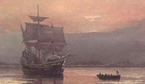 "Mayflower in Plymouth Harbor," by William Halsall, 1882 at Pilgrim Hall Museum