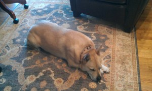 And I do have a dog, Hannah, sprawled there on my Scheherazade’s rug, also fromTurkey. Plus my robots and some of my religious collection. I love old religious art and icons and would have a houseful if I could afford it.